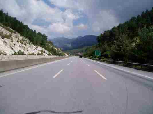 Dank leichtem reifenschonendem Niesel, der uns nicht mehr los lassen sollte, streiften wir uns die Regenkombis über. Ja, ja - die Autobahn ist fast fertig hat mir mein griechischer Freund Paul erklärt. Genaueres war auch bei ADAC und Reiseseiten nicht herauszubekommen. Ich kann mich erinnern als ich vor 25 Jahren schon mal hier war, war die Autobahn auch in Bau...