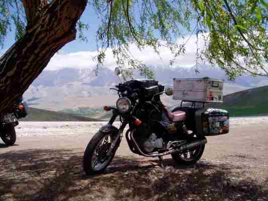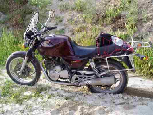 Meine 90000 Km XBR war im Winter vor der Reise fällig. Ich hatte mir im Vorfeld schon einen Motor mit wenig Km und 27 PS aus der Bucht geholt und diesen mit ein paar Dominatorteilen und Choice Hilfe auf 600ccm aufgebaut. Ein Mikuni und ein paar neue Gabelfedern, sowie eine Überholung der Konis vollendeten das Werk. Meine optischen Ansprüche führten allerdings dazu, daß ich doch recht knapp fertig wurde. Dank an Peter von der "Garasch" für den Tip mit der VHT Farbe und sonstige Unterstützung.