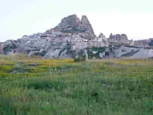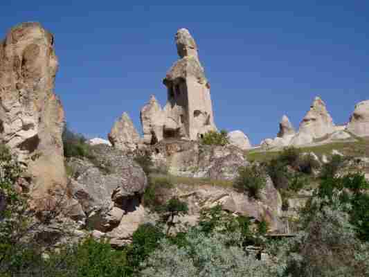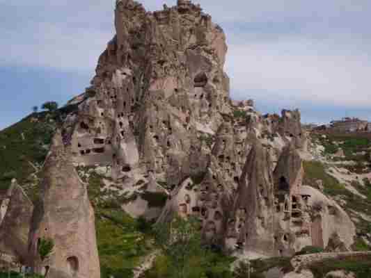 Hier sieht man die Felsenwohnungen im Göremegebiet durch Erosion werden diese freigelegt...