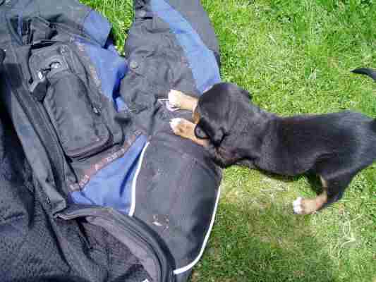 Damit ist dann auch die allbekannte Frage "Hast Du die Airbag-Jacke schon gebraucht?" von Robert mit "Ja" zu beantworten. Diese und der jetzt einige Gramm leichtere Alu Koffer haben schlimmere Blessuren verhindert.
