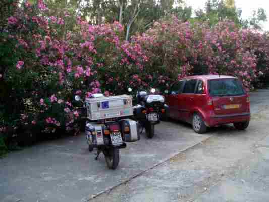 So gondelten wir immer hart am Wind und etwas über der zugelassenen Höchstgeschwindigkeit von 110 Km/h Richtung Ankona. Der Blick auf die blühenden Apfelbäume lenkte etwas von der eintönigen Route ab und für Spannung sorgte auch mein bei Vollgas absterbender Motor. Der Benzinschlauch war schon wieder geknickt.... Die Spannung stieg, weil viel mehr abschneiden war dann nicht mehr und kein Ersatz dabei, aber es hat funktioniert.