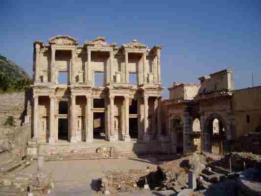 Noch schnell ein paar Steine in Ephesos hier die Bibliothek wir sind serh früh (8 Uhr) wg der sich einstellenden Hitze.....