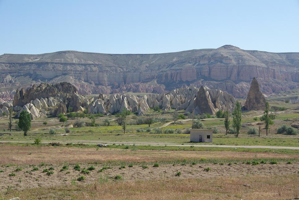 Nach Kayseri bog ich doch in Richtung Göreme ab, es war zwar ein Umweg, aber die LAndschaft ist schon spektakulär. Ich verzichtete darauf, mir mehr anzusehen, weil ich zusammen mit Jo schon vor zwei Jahren hier war. Näheres dazu und schöne Fotos gibt es im demnächst erscheinenden Syrienbericht. Ich lief in Göreme ein und machte unterwegs ein paar Bilder, die aber gar nicht representativ für die Gegend sind, in Wirklichkeit ist das alles gigantisch. Aber wie gesagt, Details dazu gibt es bald.