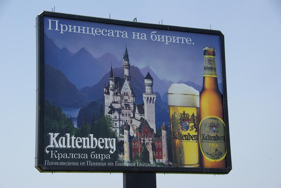 Ich düste los, aber verhaltener als in der Türkei, die bulgarische Polizei hatte ich noch in schlechter Erinnerung. Wie hat sich das Land in den letzten 14 Jahren verändert. Sogar die Strassen sind sehr passabel. Die Landschaft war etwas hügelund nicht unhübsch. Nach so viel Wüste sticht einem so viel Vegetation richtig ins Auge. Die Werbung für heimisches Bier sorgte für Belustigung.