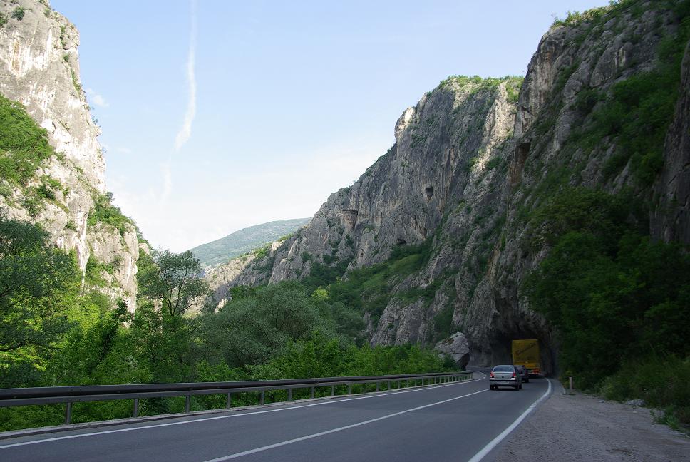 Und schon war ich zum erstenmal in Serbien. Eine hübsche, hüglige Landschaft. Ich liess es extrem langsam angehen, beachtete mich mühsam beherrschend alle Verkehrsregeln und überholverbote, nur um der Polizei keinen Vorwand zu liefern. Eine Stunde lang tuckerte ich so dahin, auch durch eine Schlucht