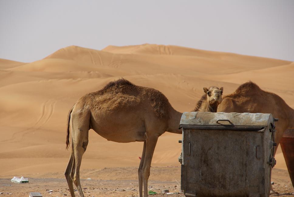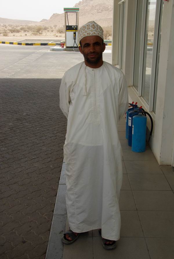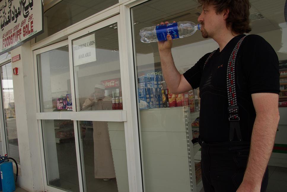 Nach weiteren nochmal ein Tankstopp, allerdings für mich, der Verbrauch war auf 1 l Wasser pro 100 km angestiegen. Im Laufe des Tages trank ich ca. 5 Liter Wasser, bei der Massenbilanz fehlen aber mehr als 4 Liter, da sieht man mal, wie heiss es war. Es entwickelte sich an der Kasse ein lustiges "Gespräch" aus etwas Englisch und Arabisch, in dem mir der ältere Herr erklärte, wie ruhig und sicher es im Vergleich zu Dubai doch sei.