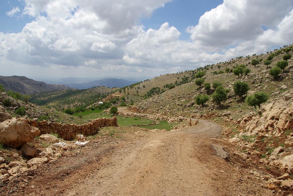 Dieser war sehr freundlich und lug mich erstmal auf einen Tee ein. Schliesslich war alles erledigt und nach einer Stunde war ich bereits über der Grenze! Dieser kleine Grenzübergang bei Sero hatte sich also wirklich gelohnt. Ich tuckerte ins wilde Kurdistan hinein. Wetter prima, tolles Licht. Schneebedeckte Gipfel, grüne Berge,