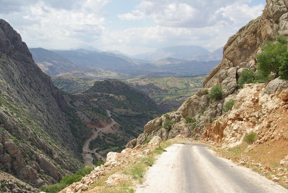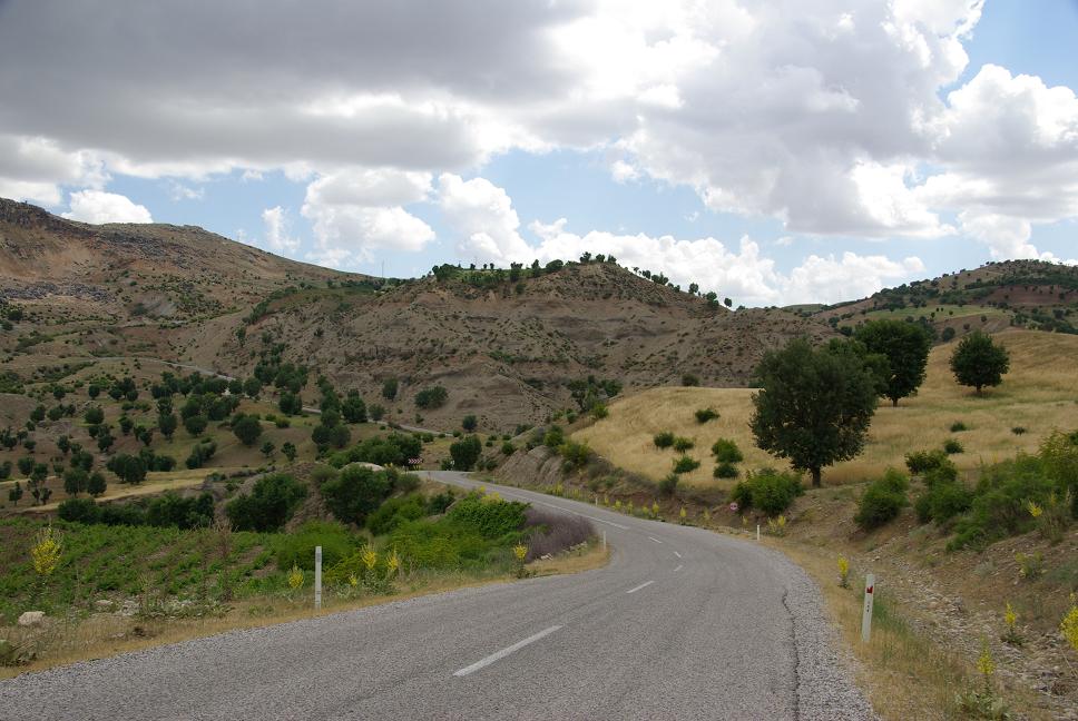 Aus übermüdung gestern nicht mehr fortgesetzt. Am nächsten Morgen losgebraust, zwischendurch sogar mal 15 km in die falsche Richtung, dank hervorragender Beschilderung. Mein Ziel war der Nemrut Dagi. Ohne Verkehr düste ich die Schtrasse entlang und näherte mich den Bergen. Sehr schöne Landschaft.