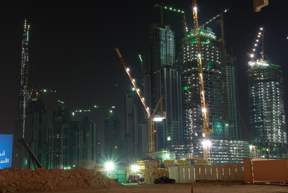 Wirkt irgendwie von einem anderen Stern und wenn man bedenkt, dass das ganze mehr oder weniger in der Wüste liegt, so spiegelt sich darin der Widerspruch unserer Zeit: Eigentlich sollte man sparsam mit Resourcen umgehen, aber hier interessiert das natürlich keinen. Auf dem Nachhauseweg kam ich wieder am Burj Dubai vorbei, wo anscheinend Tag und Nacht geschuftet wird.