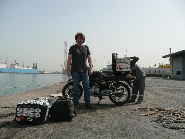 Hmmm, etwas später. kam ich an die Zollstelle, wo ich die Kisten und Koffer öffnen musste. Man fragte nach einem Dokument und schließlich stelle sich heraus, dass das Carnet de Passage gemeint war. Die Herren füllten es es (daürte etwas, ich musste zum Copyshop und noch eine Kopie von Pass und Fahrzeugschein machen lassen ("kostenlos", das Geld im Motorrad gelassen).