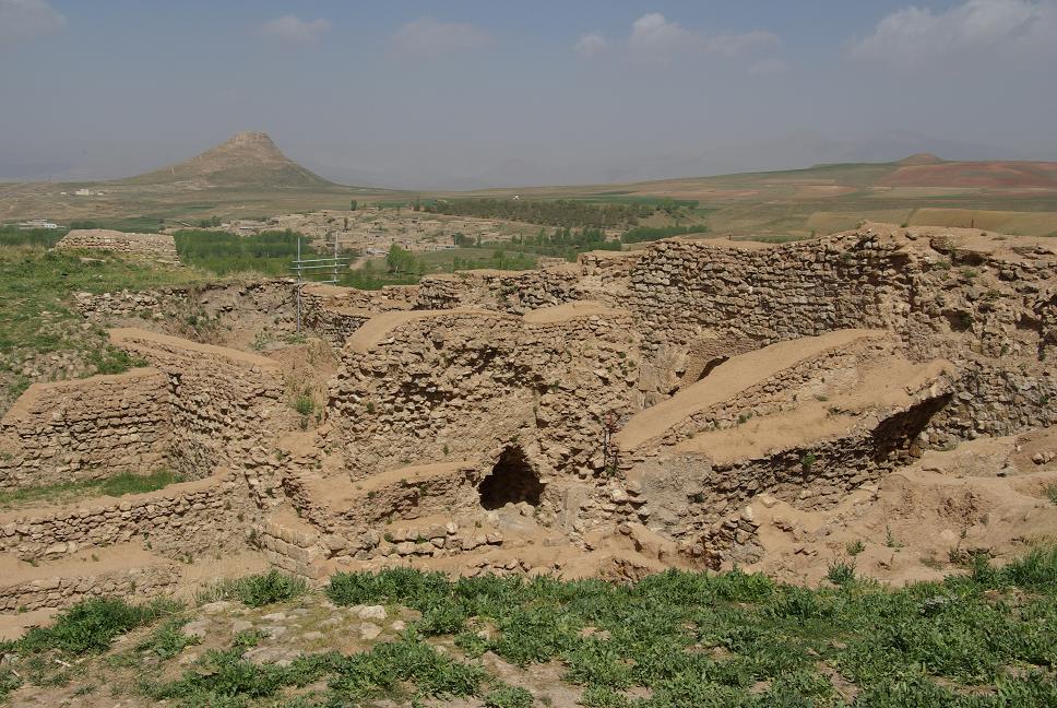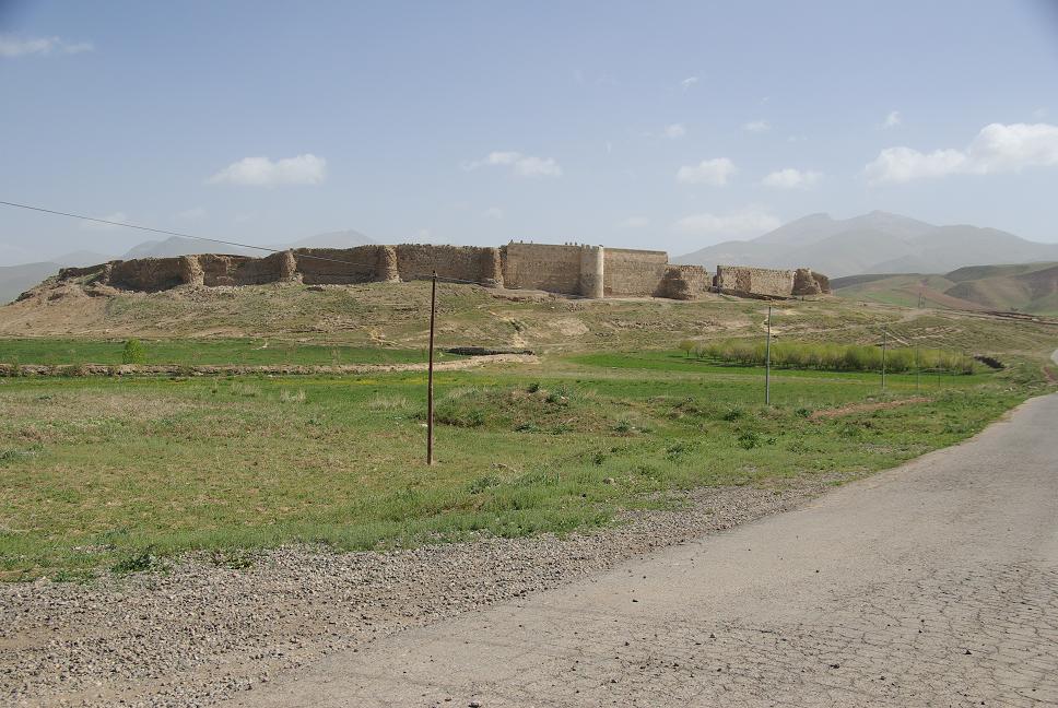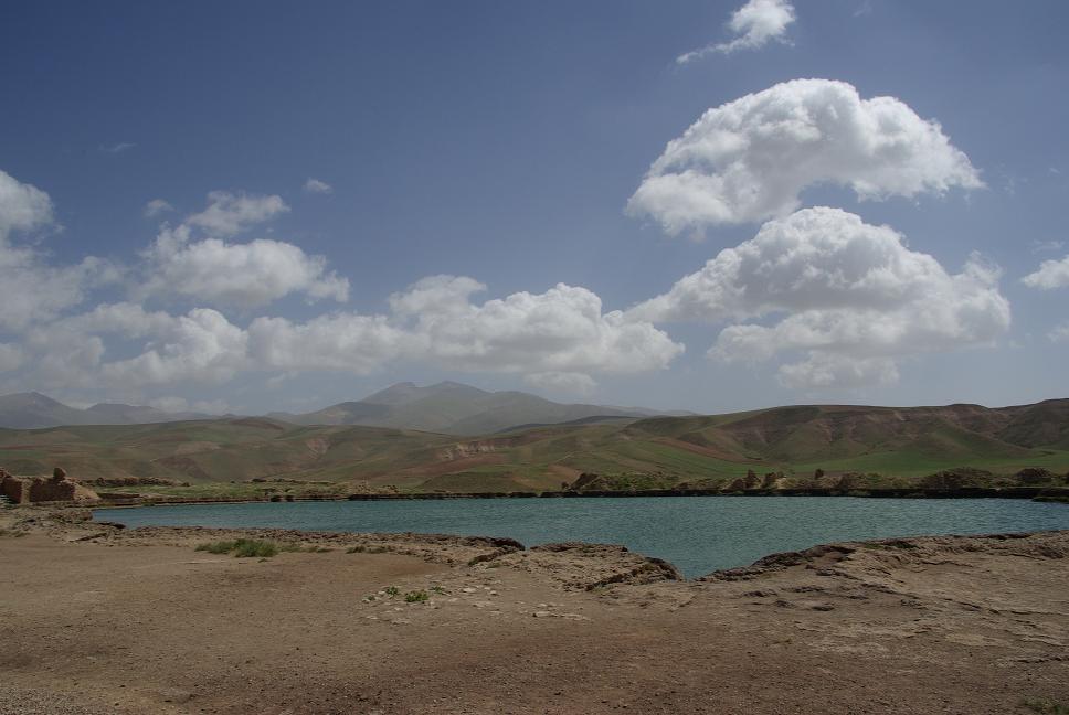 Bald darauf kam ich zum kulturellen Höhepunkt des Tages, der antiken Kultstätte Takht-e Soleiman. Es war die wichtigste Stätte der Zoroastrier (Zahatustra), auf ca. 2000 m hoch gelegen, vor 1500 Jahren erbaut. Ein besonderer Ort, auf einem Hügel entspringt eine heisse Qülle, die einen kleinen See auf dem Hügel bildet. Darum herum wurde eine Kultanlage errichtet, die wohl durch austretendes Gas die ewige Flamme speiste. Die restlichen Elemente Luft und Erde waren ja eh da. Als die arabischen Eroberer kamen, erfand man schnell eine Sage dass König Salomon mal dagewesen wäre und rettete so den Ort vor der sicheren Zerstörung. Das Areal ist seit 2003 UNESCO Weltkulturerbe. Schon wenn man darauf zufährt ahnt man: "Das ist etwas besonderes". Einmalige Lage.