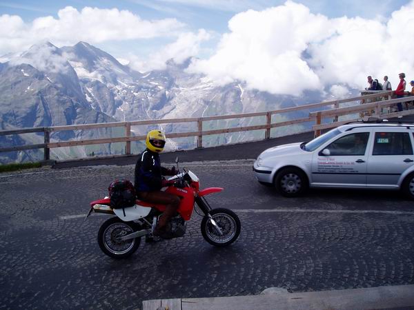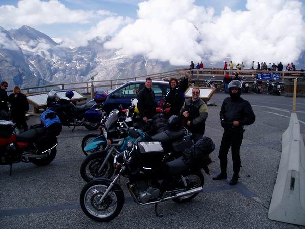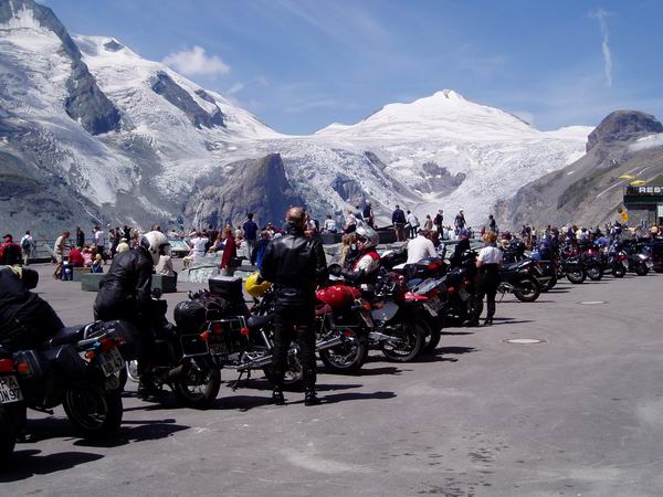 Das machte Spaß, auf die Dauer stellte ich es mir aberrespekteinflößend vor, eine Woche auf diesem Bock zu verbringen. Aufeiner XBR fährt es sich zwar nicht so spektakulär, aber doch umeiniges bequemer. Als die anderen auch eingetroffen waren, machten wir unszusammen auf zum Hochtor und zur Franz-Josefs-Höhe. Dort mischten wir unsunter die anderen (tausenden?) Touristen und reihten uns in dieKantinenschlange ein, um auf der Terrasse die fabelhafte Aussicht auf denFranz-Josefs-Gletscher zu genießen.