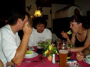 (erbarmungslos der Fotograf...) welches in der Halbpension eingeschlossen war. Dieser Tag bei schönstemWetter ließ auf weitere schöne Tage hoffen und war mit 530 km auchder längste der Tour. Die Nacht war relativ erholsam, bis auf dielautstark und inbrünstig vorgetragene Liedinterpretation der einheimischenalkoholisierten Bevölkerung.