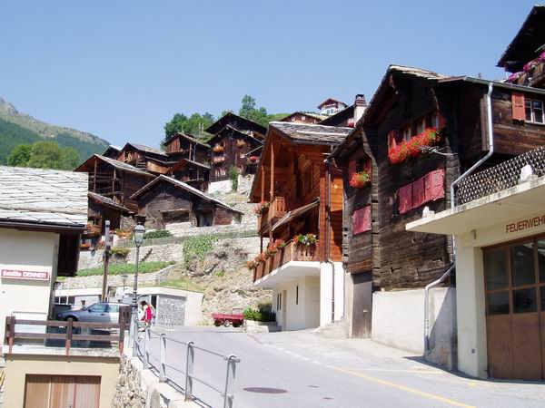Das Wetter war ja wieder mal - ihr wisst schon. Den Pass runter führte wieder eine halbe Autobahn, kurz vor Brig hätte ich beinahe die Abfahrt verpasst. Als niemand hinter mir auftauchte, fuhr ich rätselnd nach Brig hinein. Es wussten ja die anderen, dass wir uns am Bahnhof mit Matthias treffen wollten, der aus Winterthur anreiste. In der Stadt fanden wir uns dann alle wieder und warteten vor dem Bahnhofsgebäude auf den Ententreiber. Das dauerte noch ein wenig, denn er kam nicht so schnell voran wie gedacht. Schließlich traf er aber doch ein und wir konnten weiterfahren. Das restliche Programm des Tages bestand in den schönsten Seitentälern des Wallis, welche sogar mir unbekannt waren. In Visp bogen wir links ab in Richtung Stalden. Von dort aus führte eine der beeindruckensten Strecken der ganzen Tour hinauf auf die Moosalp.