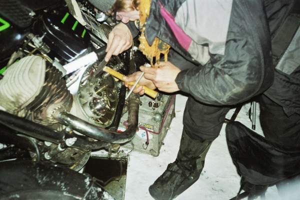 Bei der "privaten" Ausfahrt sind wir im Tiefschnee dann doch gescheitert weil es eine Kette zerrissen hat. (LL: man sollte diese nicht durchs Rad ziehen)