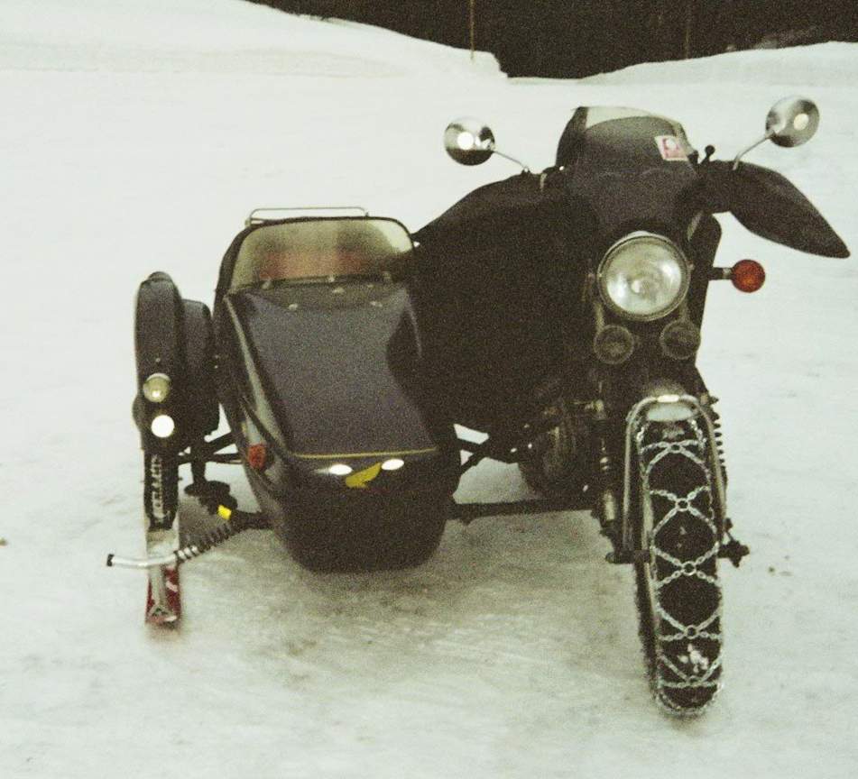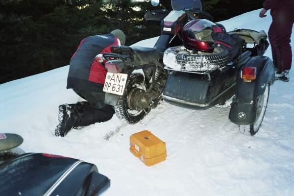 die XBR "fulldressed" mit Beiwagenski und Ketten